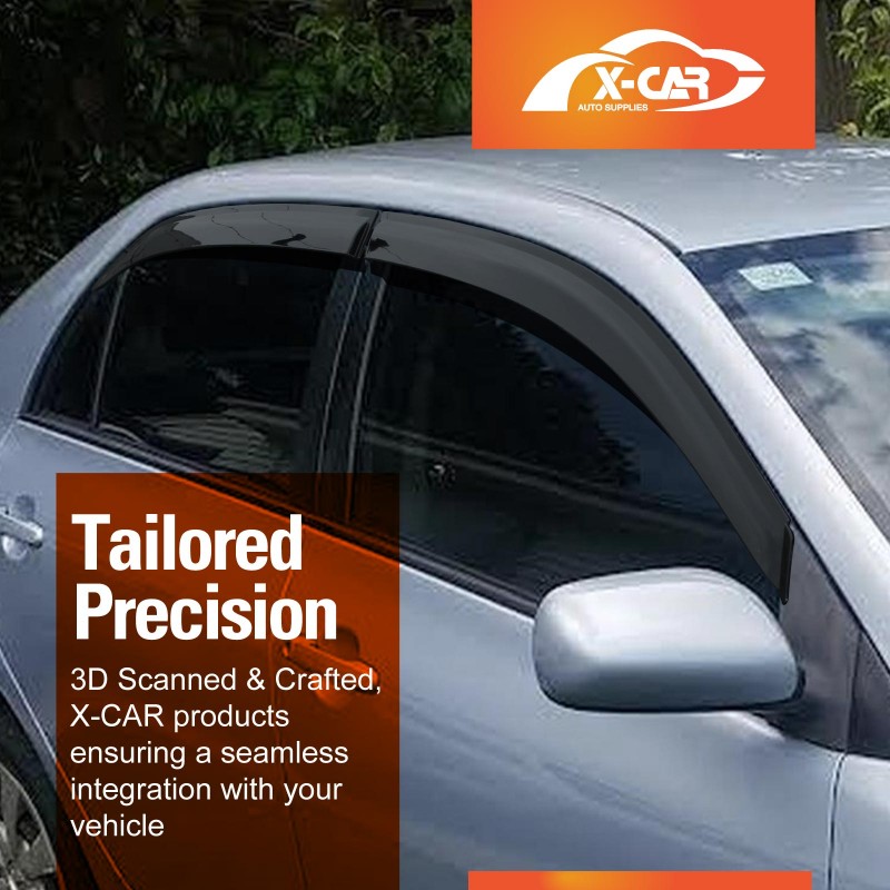 - Maximum Fresh Air Enjoyment. Let the fresh air in and keep the rain out! X-CAR side window visor span the entire window channel which allows you to open your windows and enjoy fresh air even when raining. It also reduces wind noise and minimizes the turbulence with open windows.