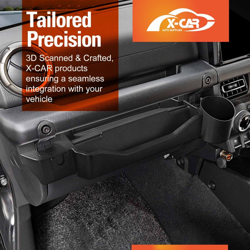 - Custom-Designed: This grab tray passenger storage box with cup holder is designed for Suzuki Jimny 3-Door & 5-Door 2018-Current, fitting securely on the front passenger grab handle above the glove box. It effectively protects the car’s surface and provides additional storage space.