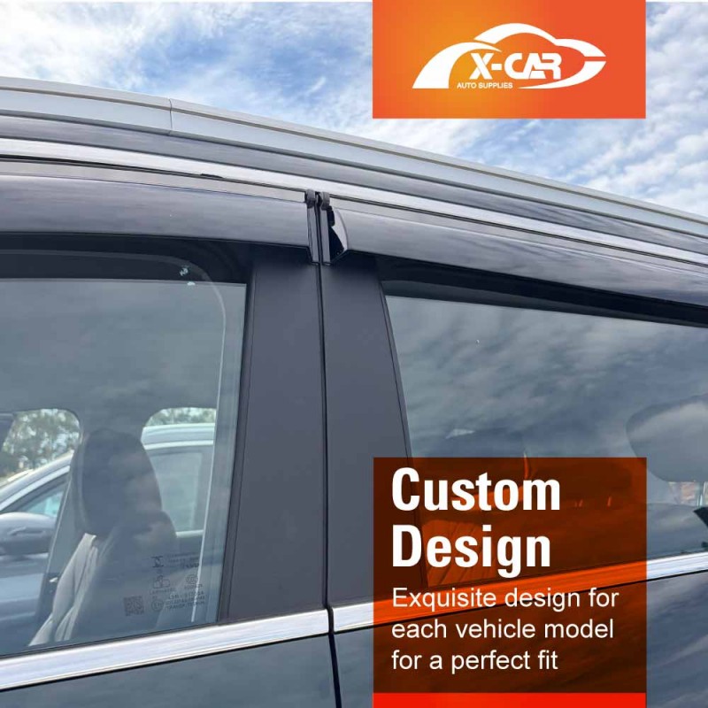 - Maximum Fresh Air Enjoyment. Let the fresh air in and keep the rain out! X-CAR side window visor spans the entire window channel, allowing you to open your windows and enjoy fresh air even when raining. It also reduces wind noise and minimizes turbulence with open windows.