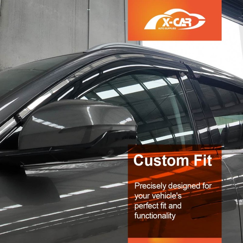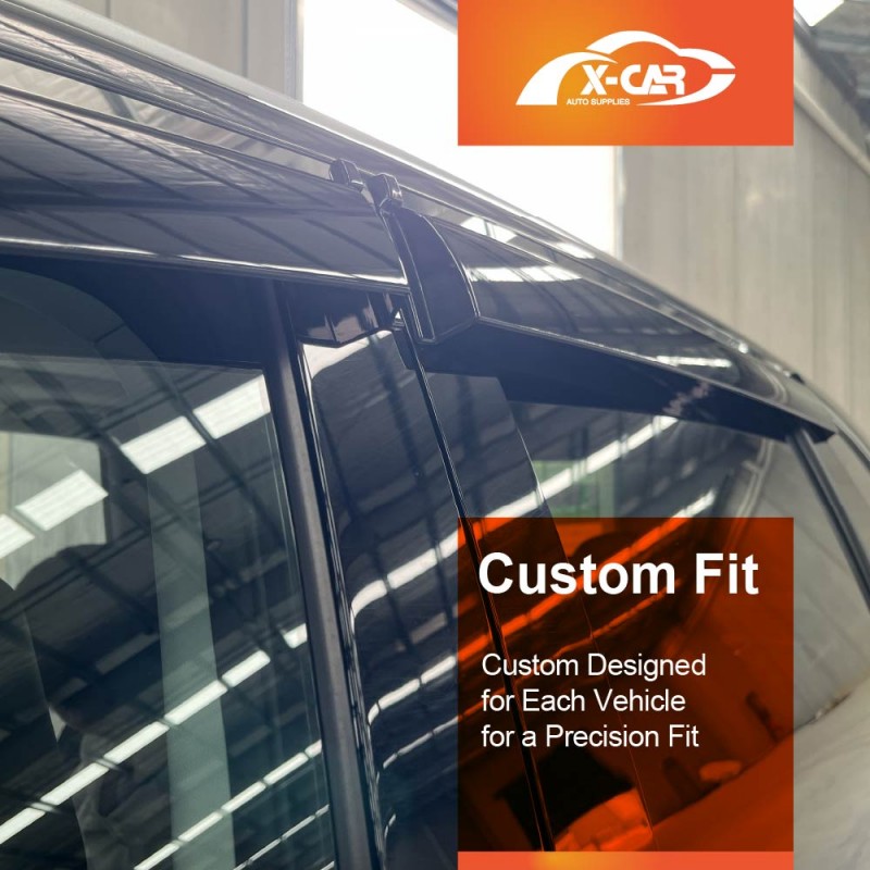 - Maximum Fresh Air Enjoyment. Let the fresh air in and keep the rain out! X-CAR side window visor spans the entire window channel, allowing you to open your windows and enjoy fresh air even when raining. It also reduces wind noise and minimizes turbulence with open windows.